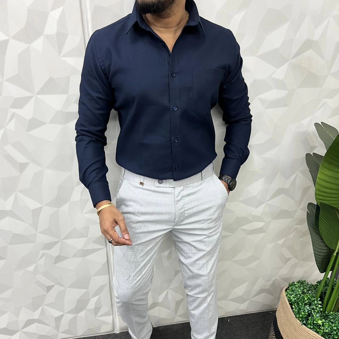 MEN'S PREMIUM FORMAL / LYCRA COMBO Dark Blue shirt Light Grey Pant